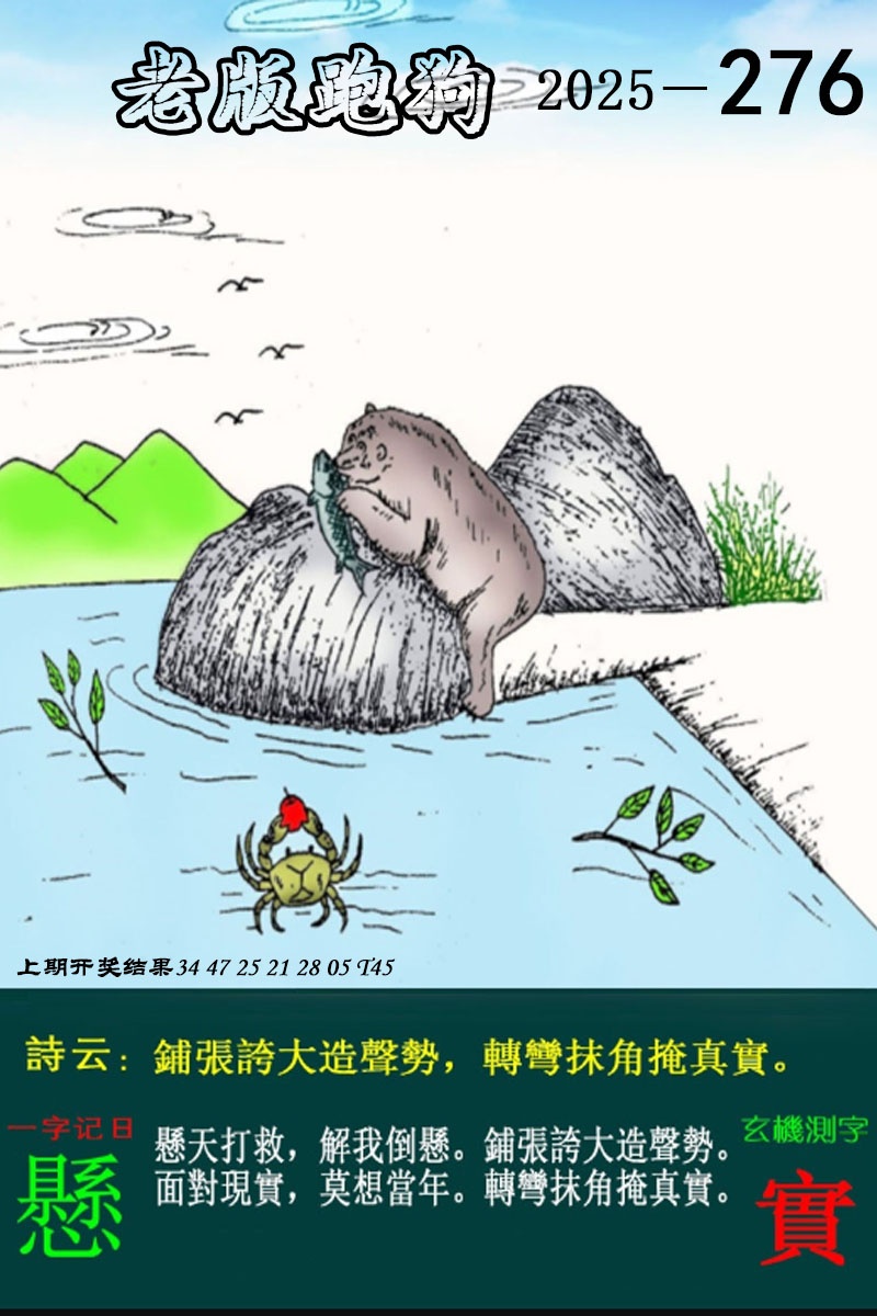 老版跑狗一字記之曰:【攀】 詩云:冰弦纖指彈流水,未許蛛絲網素筝。大石當山,易跨易攀。冰弦纖指彈流水。誌向要大,氣力勿怪。未許蛛絲網素筝。玄機測字:《慳》